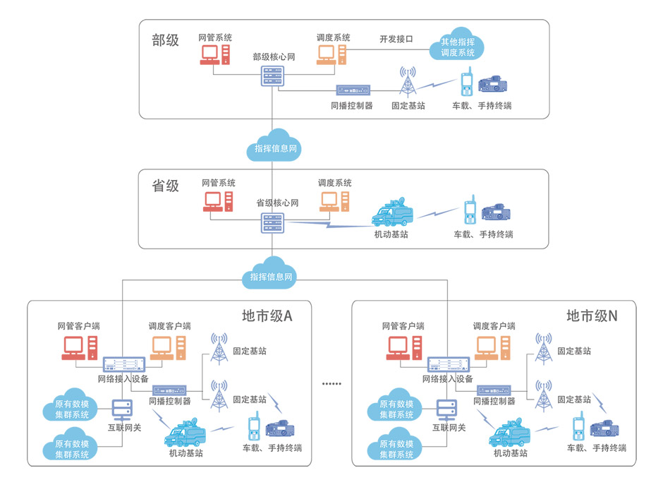 人防指挥所是各级党政机关战时人防的核心指挥场所,依托人防指挥专网及其他专用有线/无线通信网络,指挥部可通过指挥所的指挥通信系统,对上连通党政机关、国动委、上级人防办,对下指挥下级人防办、重要目标单位、各人防专业队和人防工程,实现空情警报一体化、通信调度集成化、信息处理自动化、决策指挥智能化、业务流程图形化、综合保障高效化,最终形成一个全方位、多维度、多层次的高效指挥通信体系。